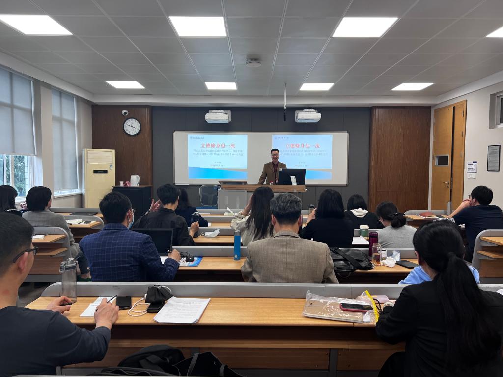 其次,他阐明了立德修身与“创建一流”的逻辑关系,希望教职员工正确认识立德修身的目的意义和“德”的重要性,提升对思政理论课“关键课程”重要地位的认识,从而按照习近平总书记对思政课教师提出的“六个要”,坚持“丹心向阳”育新人。