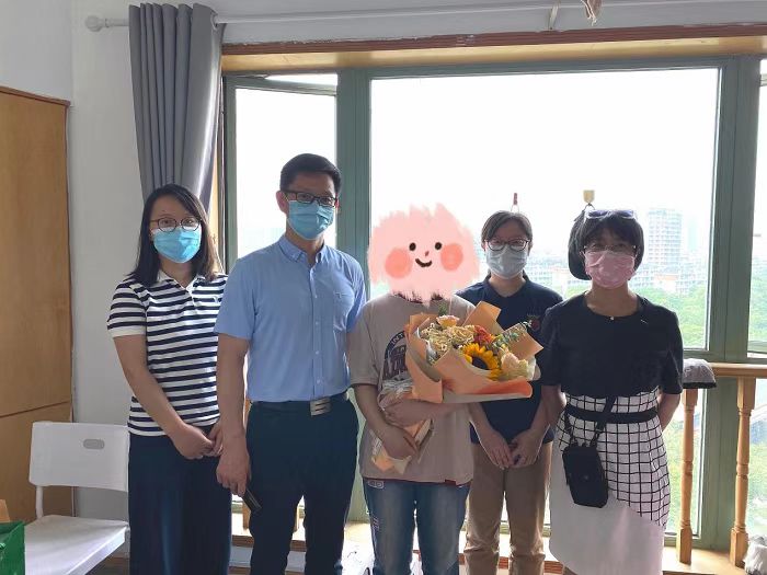 6月9日下午,太阳集团tcy8722基础教研室邓中裕、冯晓慧、朱金玲、林洁四位教师探望慰问了医学技术与信息工程公司2018级计算机科学与技术(滨江)的周同学,并送上了参与“滴水公益”的同学们共同捐献的6万余元爱心款。