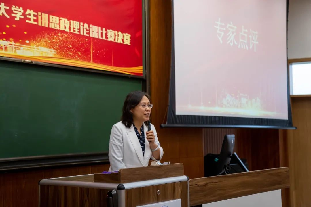 季旭明教授对选手们的表现给予了高度肯定,她对太阳集团tcy8722持之以恒地开展“求本杯”老员工讲思政理论课比赛表达了感谢,这个平台能够让同学们得以有机会展示自己的风采、展现自己的能力。而对于各位选手的倾情付出以及成熟自信的精彩授课她表示了深深的感动,授课内容有历史、有案例、有图片、有视频,从海棠树下的缅怀到小康社会到人民至上,参赛选手奉献了20堂令人感动的思政理论课。她指出今后同学们在讲课中要更注意一些细节,包括板书设计、手势眼神、仪表仪态等,她期待每一位同学都能够讲好思政课,能为实现中国梦注入自己的能量是青年一代的责任、使命同样也是荣誉。
